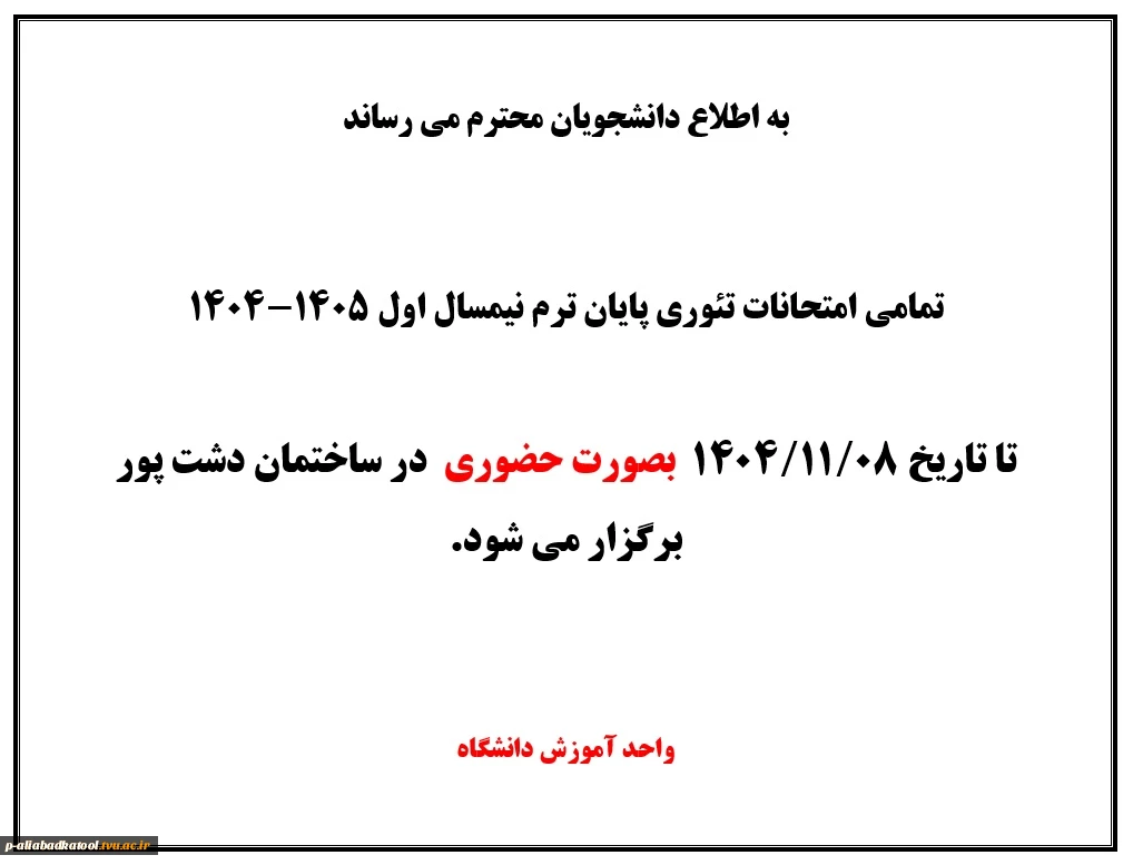اطلاعیه نحوه برگزاری امتحانات پایان ترم نیمسال اول 1405-1404 2